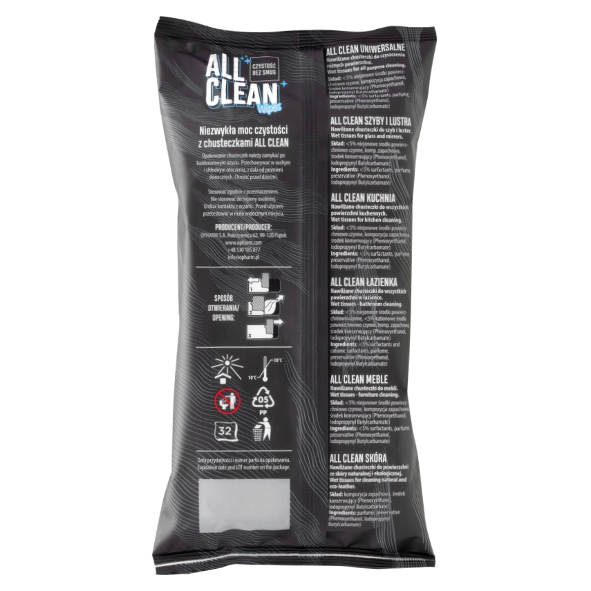 ALL CLEAN WIPES Chusteczki do sprzątania MEBLE - 32 szt. | REF: GM01