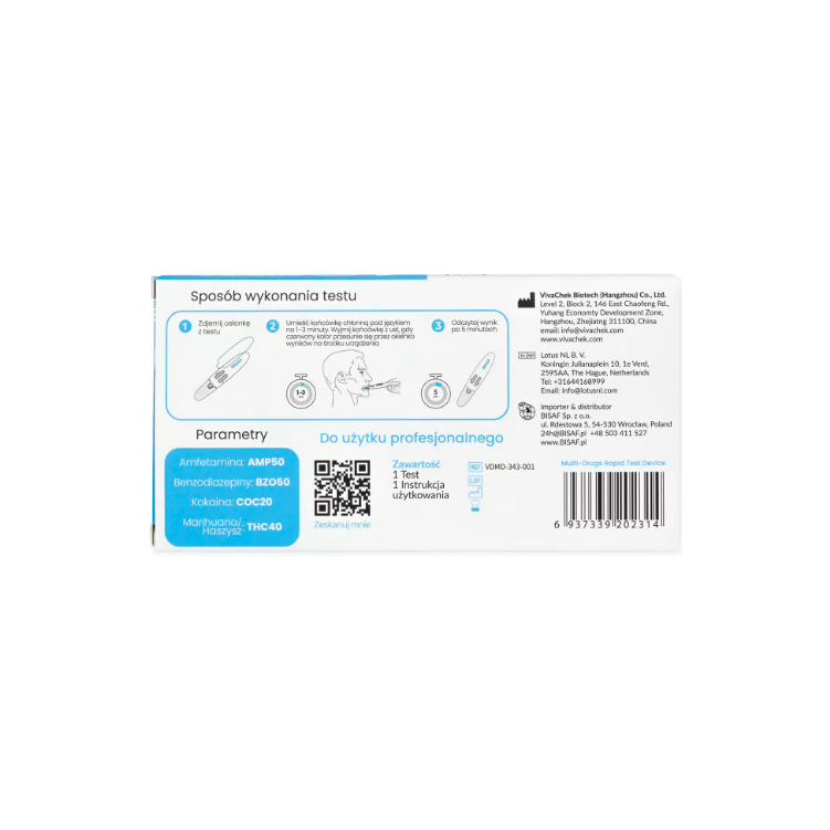 BISAF Test narkotykowy ze śliny na 4 substancje - 1 szt. (do użytku profesjonalnego)