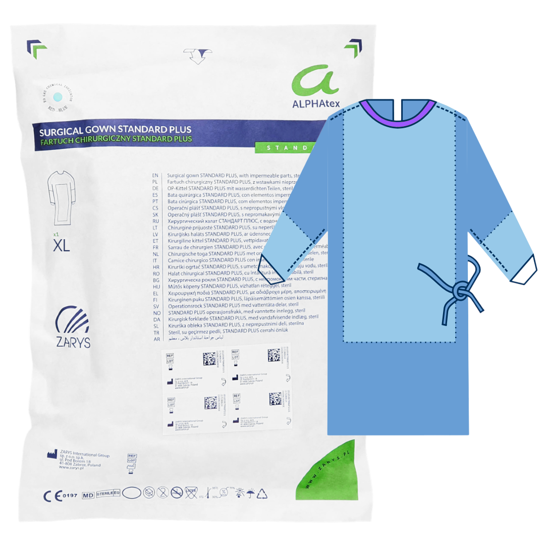 Fartuch chirurgiczny wzmocniony sterylny rozmiar XL - ALPHAtex ZARYS | REF: AT-SGSP-XL 1E