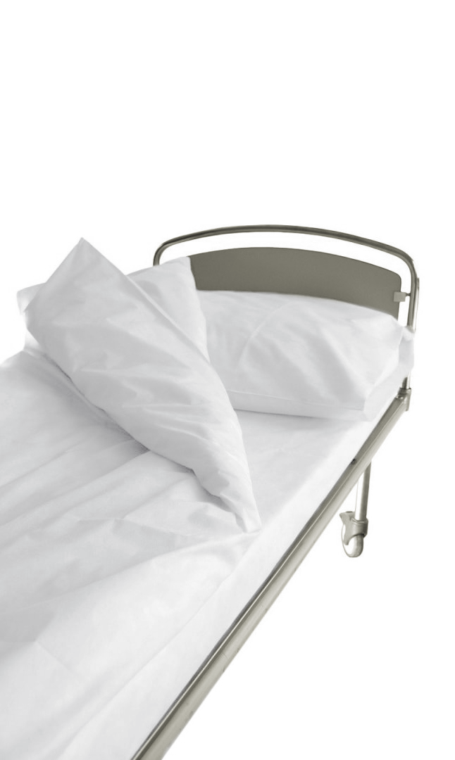 Jednorazowa pościel medyczna, niejałowa. Przeznaczona do użytku w szpitalach oraz gabinetach zabiegowych. Wykonana z włókniny polipropylenowej. Zestaw składa się z poszwy na kołdrę, poszwy na poduszkę oraz z prześcieradła.