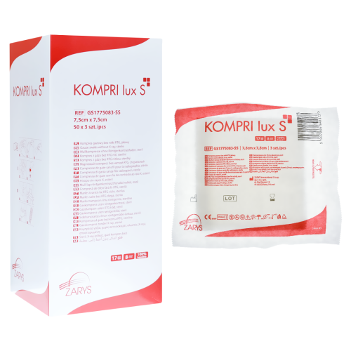 Kompresy gazowe jałowe 7,5x7,5 cm KOMPRI lux S - 150 szt. (50 blistrów A'3)