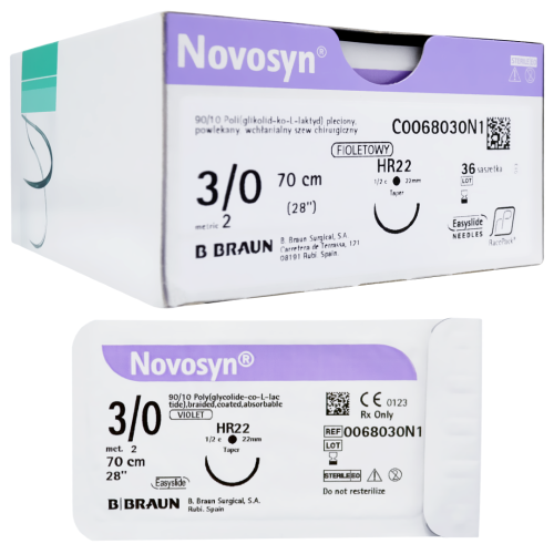 Nici chirurgiczne, szwy wchłanialne - B.Braun Novosyn® 3/0 22mm HR22 - 36 szt. / REF: C0068030N1
