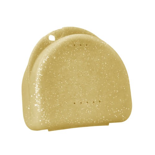 Pojemnik - pudełko na aparat ortodontyczny protezę - ZŁOTY BROKAT