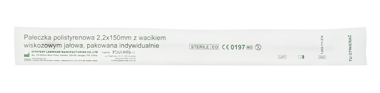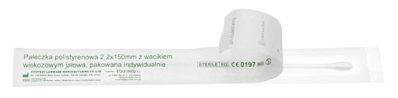Wymazówka - pałeczka polistyrenowa z wacikiem wiskozowym 15 cm Citotest - 500 szt. | REF: 7.012.111.214