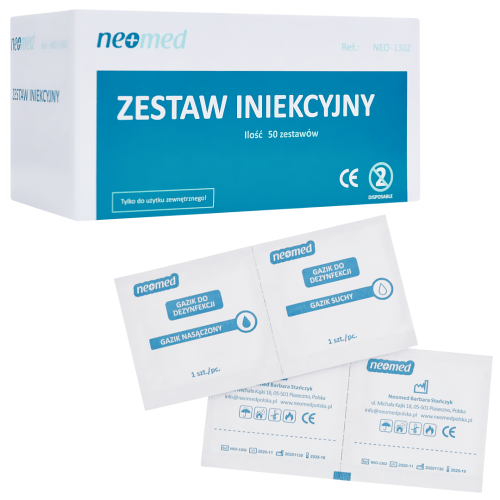 Zestaw iniekcyjny sucho-mokry gaziki z alkoholem 6cm x 3cm NeoMed - 100 szt. (50+50)
