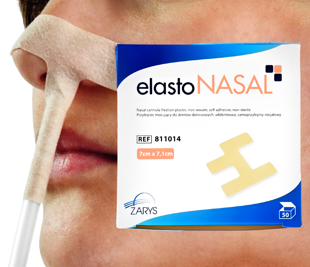 Specjalnie wyprofilowany elastyczny przylepiec - przystosowany do drenów, cewników i zgłębników mocowanych w okolicy nosa.